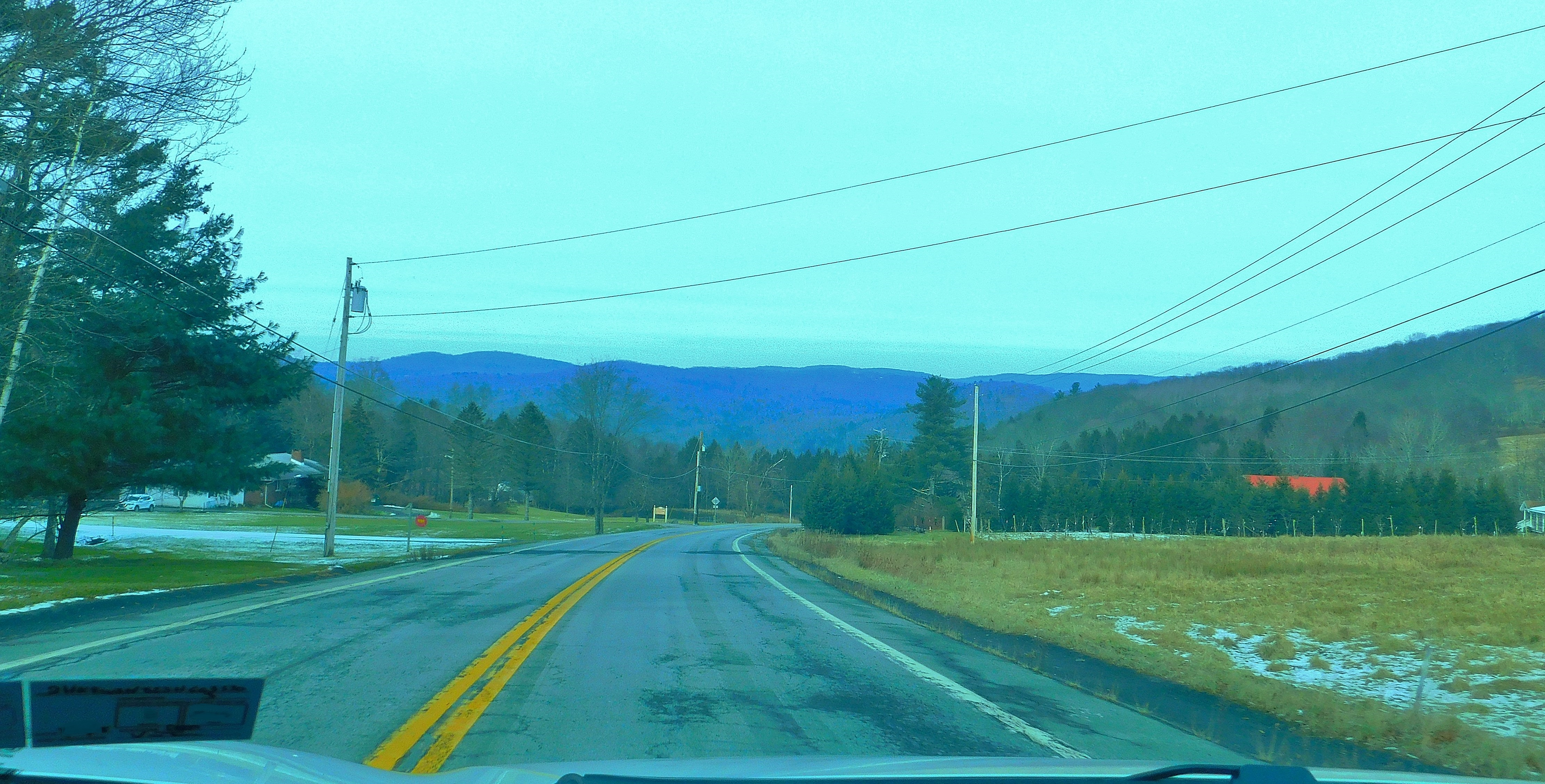 Roadtrippin is impulsive and of course when the notion hits you a right hand turn is so much easier to execute. You never know where that right hand turn takes you. Our roadtrippin adventures are done the old fashioned way, no gps, no atlas, just take a guess and drive. Sometimes there are visible hints as to where you are headed. Road signs that say “Dead End” or as the sun goes down you know where “West” is. One of the most important signs to look out for is your gas tank gauge, it should read full as you begin your trip and hopefully still have some gas before your trip ends, otherwise you will be footin it. The other day, Patty and I decided to hang a right turn on a back road just off route 6 near Honesdale. Brook road parallels Holbert creek (not brook) to where it becomes Torrey Road where the road opens up out of the forest to rolling farmland with views of distant mountains, many of them.