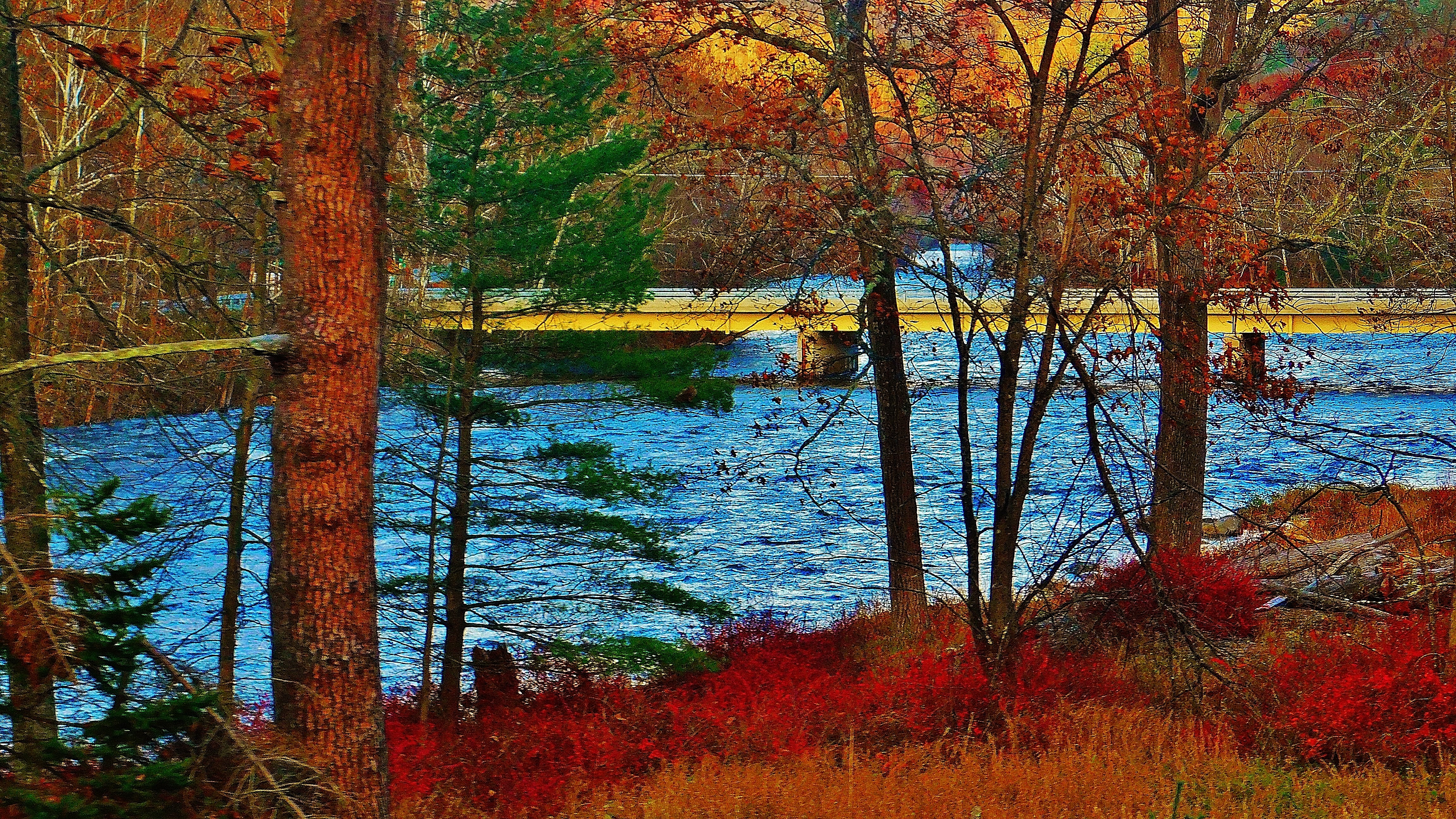 Looking right, looking left, as I write this 5 hours later, my neck is killing me, but who can help it. On the left views of the river; straight forward, windy and curvy, at level or from high up. Thinking about Native Americans as they camped, fished and or hunted along the river paths. On the right in most places the land rises through young sapling forests dotted with fir trees and framed with the grayish green boulders of rockwall outcrops here and there. At 60, I feel like a kid again, so much wanting to jump out of the car, run up into the forest and start building a fort, partially of tree branches and partially of rocks. “KEEP YOUR EYES on the road” is voiced into my right ear as the car begins to sway across the white line in the road.